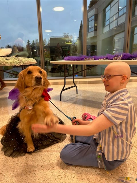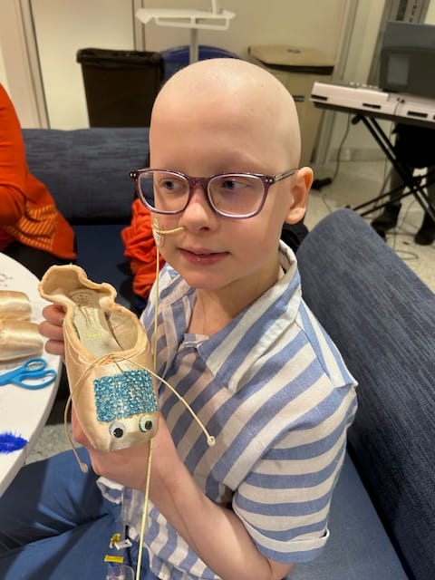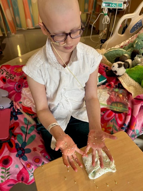 All things considered, she seemed to tolerate this cocktail well. No major nausea or discomfort, but she was visibly exhausted. Not a lot of conversation happened in our room, unless it was Connor or I cracking jokes to our nurses. Despite her fatigue, it didn't stop Charlotte from participating in events around the hospital. She went to school each day, sketched with the art therapist, built Lego, made slime, visited with Scarlett the dog, met dancers from PNB's "The Nutcracker," joined a Zoom call for a tour of WildLanterns at Woodland Park Zoo, and even had a movie night with her friend.