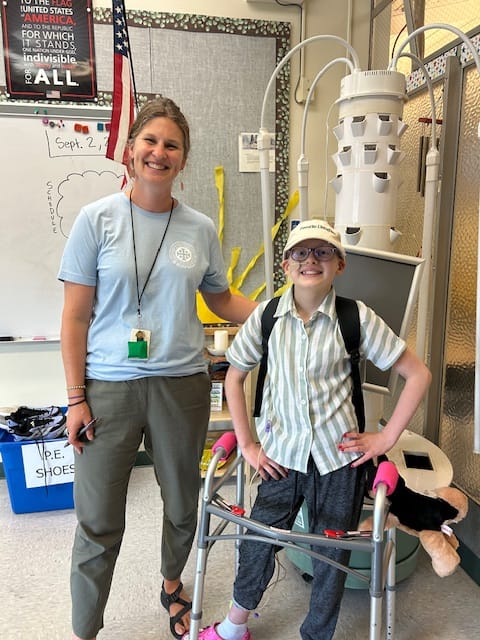 After our appointments at the hospital, we were able to take Charlotte to St. Luke to meet with her teacher, principal, and the director from the Learning Resource Center to come up with a plan for the school year. She very much enjoyed walking, and dancing in, the halls and visiting with some of her favorite people!